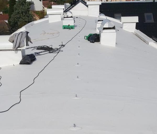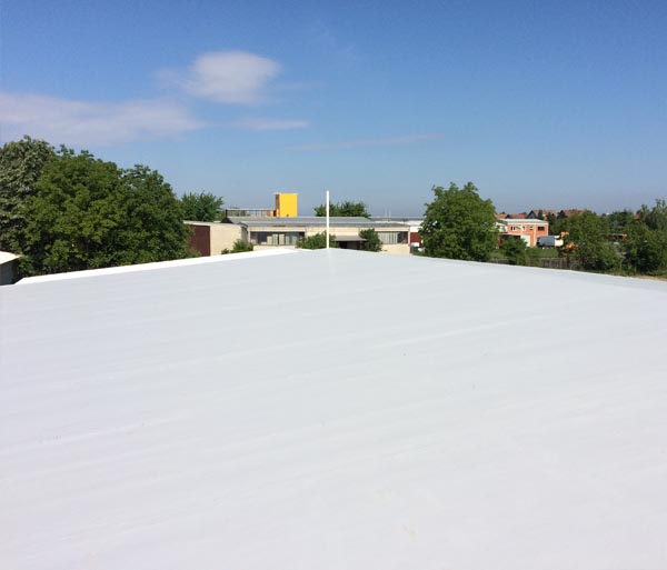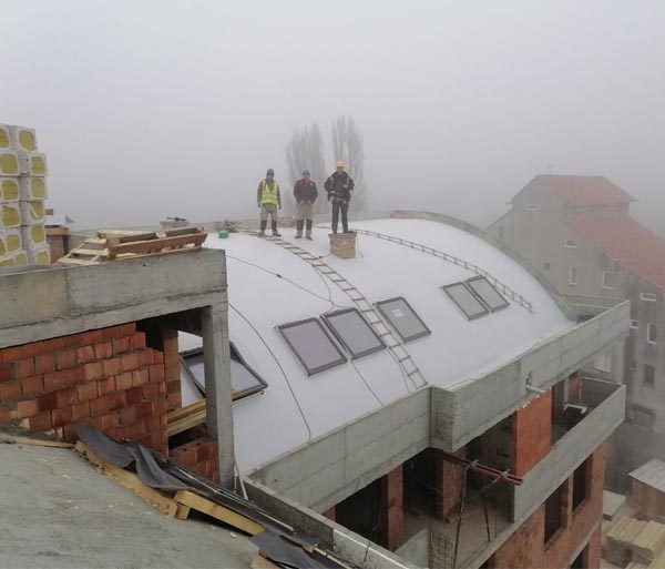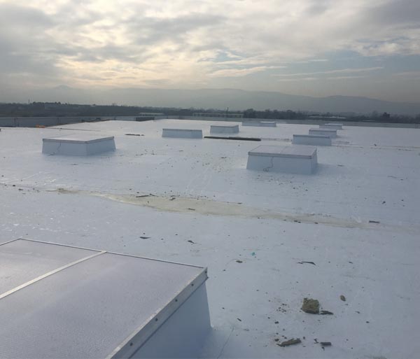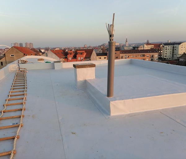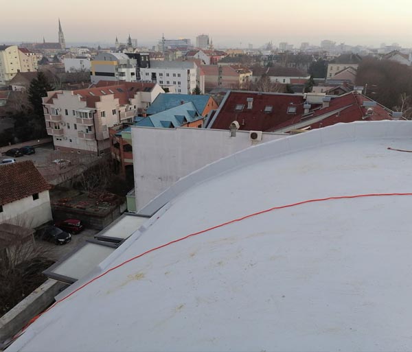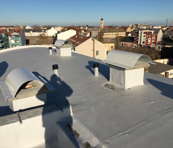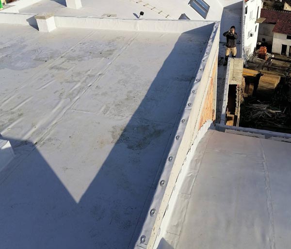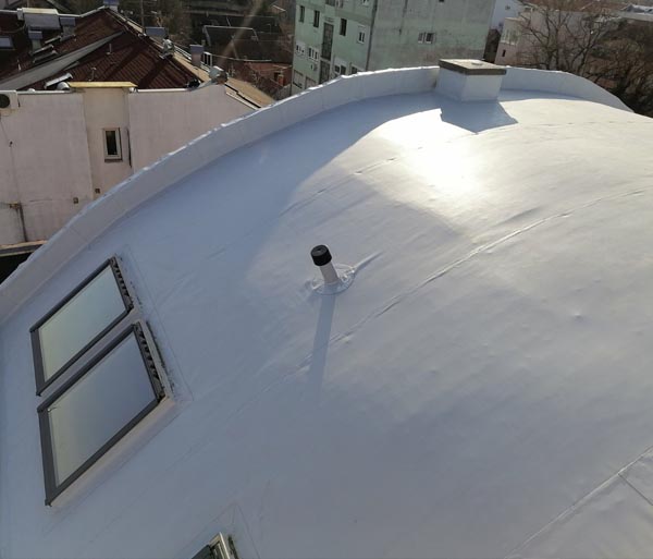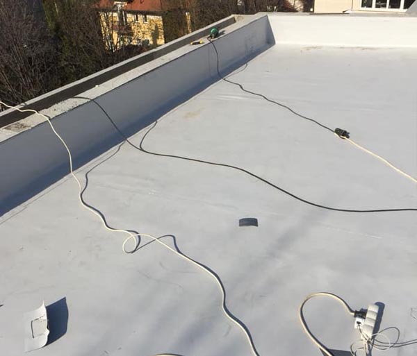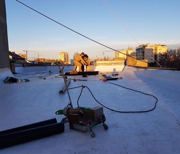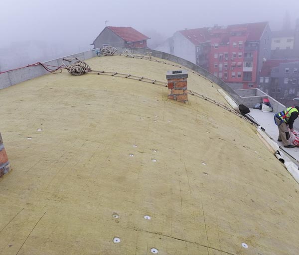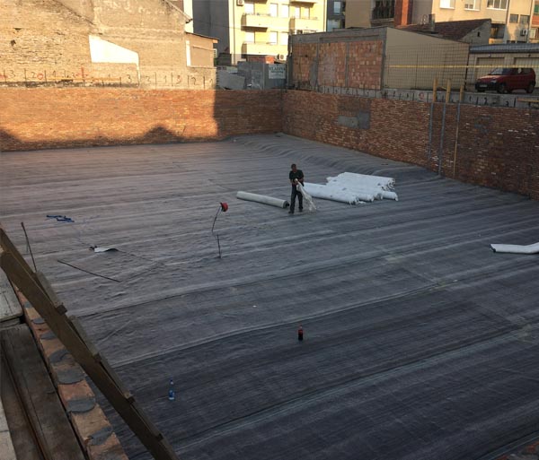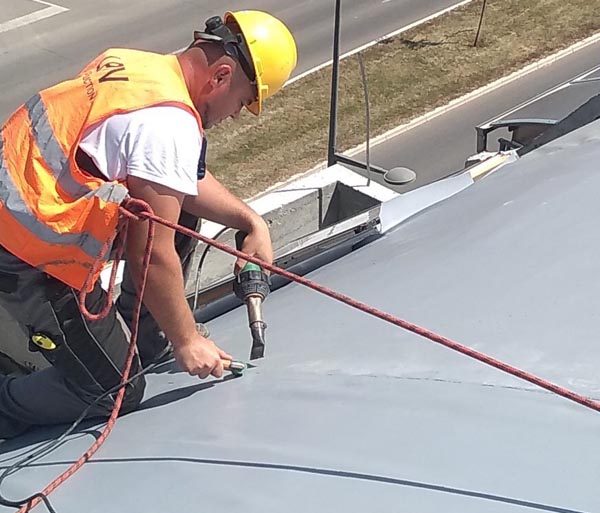 Hidroizolacija ravnih krovova poslovnih objekata: bilo da je krovna ploča izvedena kao monolitna AB tavanica ili od TR lima, kao završni sloj neizostavna je ugradnja sintetičkih membrana: PVC, FPO, TPO, EPDM itd… kontaktirajte nas kako bismo dali idealno rešenje za Vaš poslovni objekat.